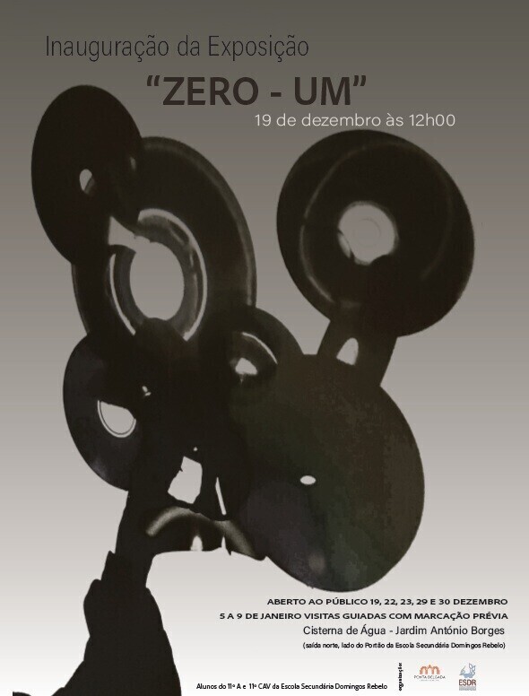 A Cisterna do Jardim António Borges vai acolher, a partir de sexta-feira, 19 de dezembro, a exposição “ZERO-UM”, um projeto artístico e multidisciplinar, apoiado pela Câmara Municipal de Ponta Delgada e concebido pelos alunos do 11.º ano do curso Humanístico de Artes e do curso do ensino artístico especializado, da Escola Secundária Domingos Rebelo, no âmbito das disciplinas de Desenho A, Imagem e Som e Projetos e Tecnologias.
