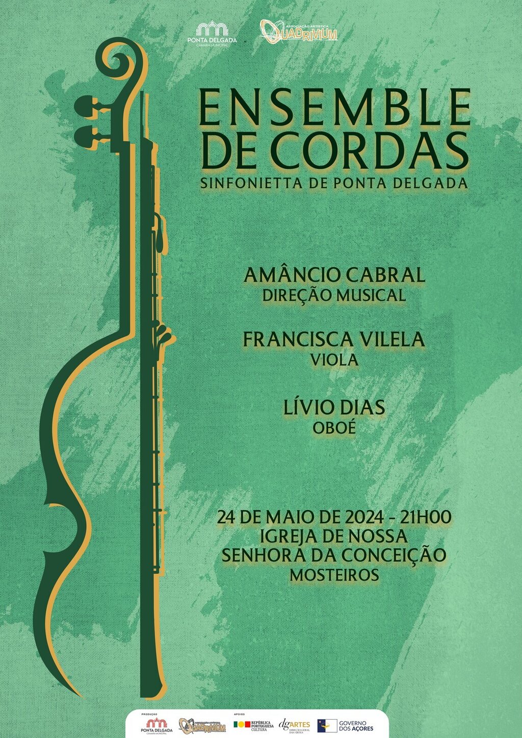 A Sinfonieta de Ponta Delgada, da Associação Quadrivium, apresenta um concerto no dia 24 de maio, na Igreja Nossa Senhora da Conceição, nos Mosteiros, às 21h00, com entrada livre.