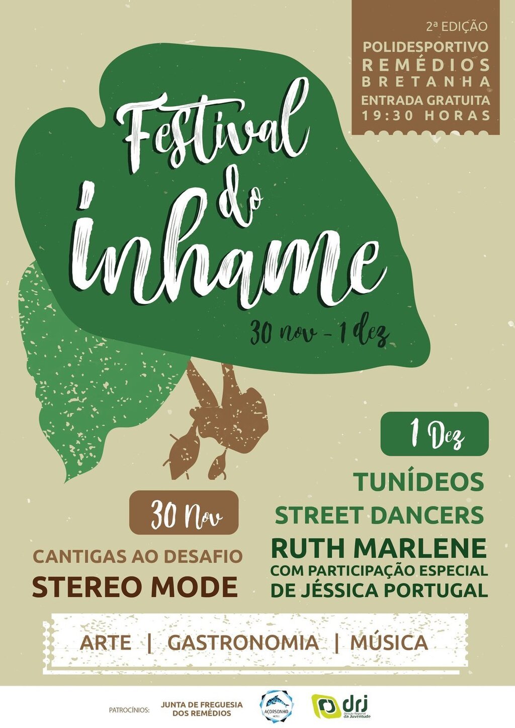 Atuações de Tunídeos, Street Dancers e Ruth Marlene. Gratuito.