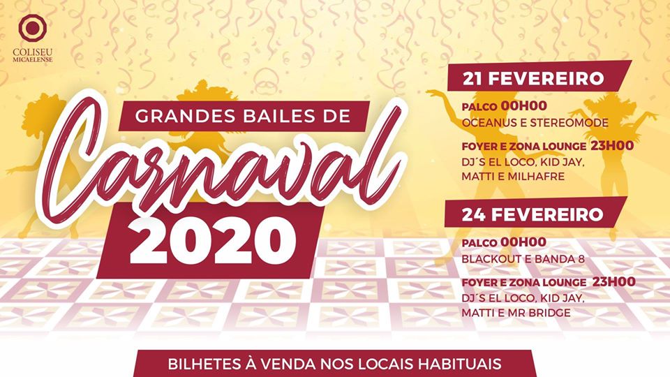 Chegou a altura dos tão esperados Bailes de Carnaval 2020 do Coliseu Micaelense! Este ano estarão em palco as Bandas Stereo Mode, Oceanus, Banda 8 e Blackout. No foyer e zona lounge, estarão os DJ’s El Loco, Kid Jay, Milhafre, Matti e Mr. Bridge.