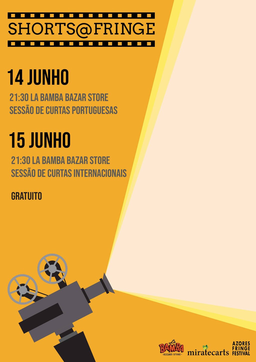 Sessão de curtas nacionais e internacionais. Atividade inserida dentro da programação do Azores Fringe Festival 2019. Gratuito.