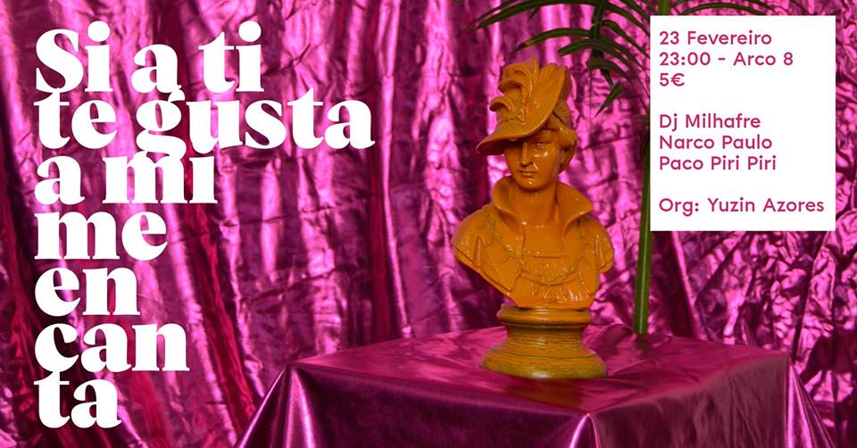 Depois do grande festão que foi o Arraial na Rua do Aljube em Agosto, a SI A TI TE GUSTA A MI ME ENCANTA volta com mais uma edição PRÉ-CARNAVAL no dia 23 de Fevereiro no Arco 8 Azores, em Ponta Delgada. Os sujeitos de costume o consórcio DJ Milhafre, Narco Paulo e Paco Piri Piri estão encarregados de dirigir a pista de dança em Santa Clara, com os ritmos tropicais oriundos de todos os continentes.