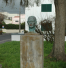 O busto de bronze é da autoria de J. M. França Machado.