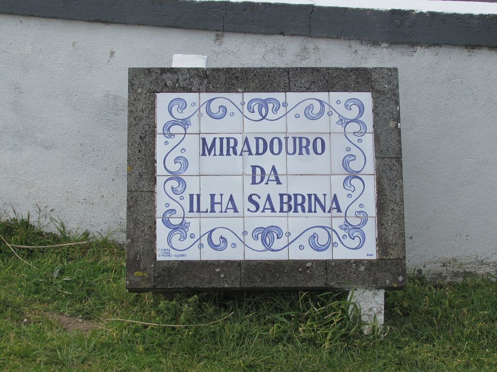 The name derives from a small island that was formed in the sea in 1811 after an underwater volcanic eruption. The island, called Sabrina by a commander of an English frigate with the same name, disappeared after a few months, but the viewpoint remains, overlooking the Ferraria Point and lighthouse and part of the area where the Camarinhas Peak Natural Monument.